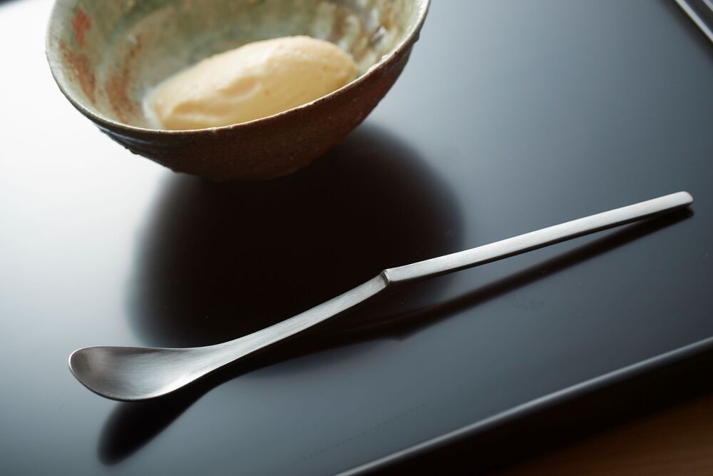 地元富山は髙岡の世界に誇る鋳物製作の能作様に依頼し、設計から金型作成、製品完成まで、ふじ居独自のスタイルのスプーンをご用意いたしました。熱伝導も良く、冷たいアイスクリームには抜群です。
