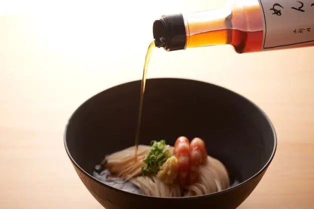 丁寧に引いたかつお出汁にさらにかつおをのせて(追いかつお)味醂、お醤油、お酒で調味いたしました。コクのある、めん出汁です。冷たい麺に、天ぷらのつゆに、丼物を作る際のお出汁にと幅広く重宝いたします。
