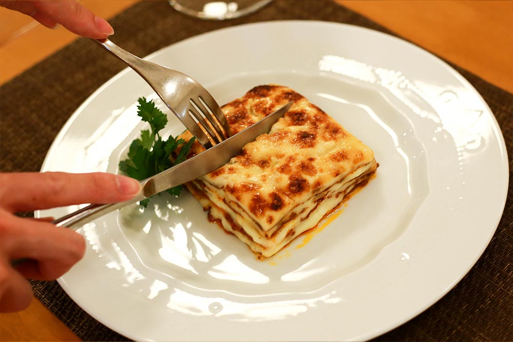 濃厚に仕上げたベシャメルソースと生パスタならではの食感のラザニア麺を何層にも重ね、イタリアのパルミジャーノレッジャーノをたっぷりかけ香ばしく焼き上げました。