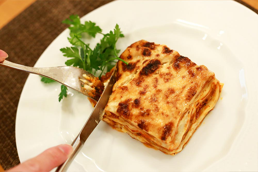 濃厚に仕上げたベシャメルソースと生パスタならではの食感のラザニア麺を何層にも重ね、イタリアのパルミジャーノレッジャーノをたっぷりかけ香ばしく焼き上げました。