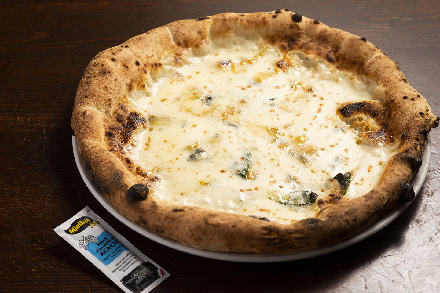 食べログ百名店のピザ部門2023に選出された「ピッツェリア ジターリア ダ フィリッポ」より、人気の「Quattoro Formaggi con Miele」をご用意致しました。